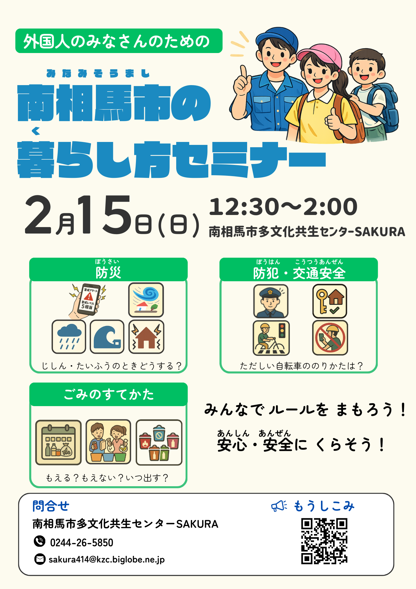 SAKURAでは、外国人のみなさんのための、『南相馬市の暮らし方セミナー』をやります。